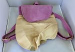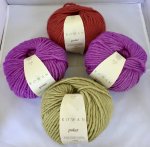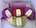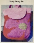 Knit a Pansy Swing Sac using Rowan Polar in fuschia, spring green, and red. Once the knitting is finished attach the light pink suede top, strap, and lining assembly. Includes all yarn, suede, lining, and hardware.